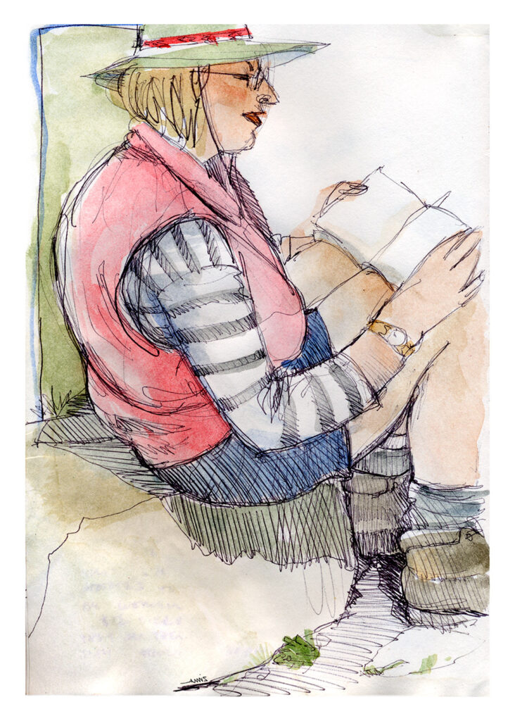 pretty well, of a dear friend on a lovely, long hiking trip. Little sketchbook drawings