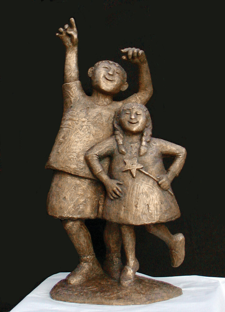 A commissioned piece that stars on the page “The making of a bronze”.  The motive was to celebrate the family’s two young, now adult, happy delightful kids.  The mother of the family loves the poetry of ee cummings, hence the title. They gave me free rein on the design, which was particularly wonderful.