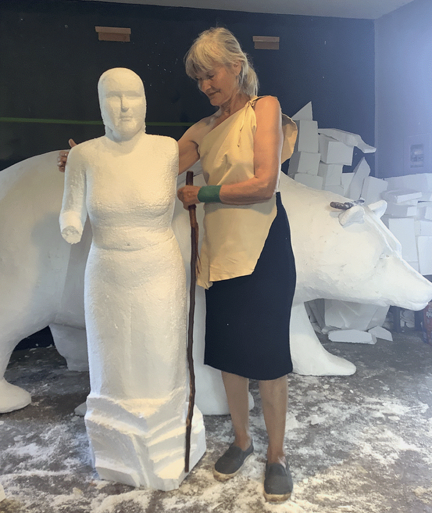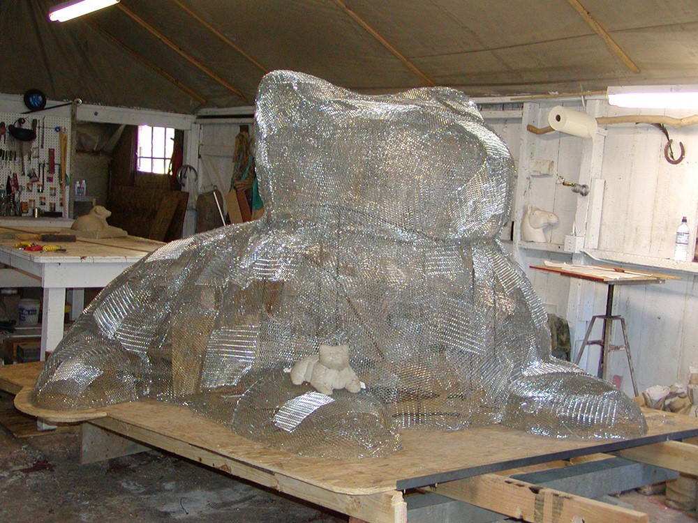 covered with expanded metal lathe. If you look carefully, you will see the original maquette, the small-sized sculpture, which the enlargement was based upon.